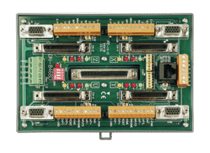 Eletricamente, a placa opera com lógica em 24 VDC e dispõe de entradas digitais acondicionadas para tolerância industrial a ruído (filtros RC e isolamento optoeléctrico em alguns modelos). O condicionamento de sinais de encoder diferencial contribui para imunidade a EMI, que deve estar em conformidade com IEC 61000‑4‑x para ambientes industriais pesados.